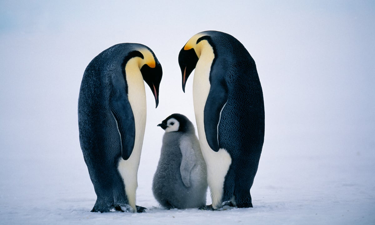 Após colocar o ovo, a mãe entrega cuidadosamente para o pai que vai incubar enquanto ela vai ao mar se alimentar. Ela volta cheia de peixes para compartilhar (regurgitando) no momento exato que o filhote nasce! Que precisão. Depois de nascido, o cuidado do filhote segue compartilhado, revezando o filhote entre as patas e penugem da barriga de um e do outro. Quando estão maiores, preparados pra pisar na neve sozinhos, os filhotes são reunidos em uma “creche” coletiva, fazendo piados que parecem crianças brincando, e se mantendo aquecidos enquanto os pais vão pescar.
