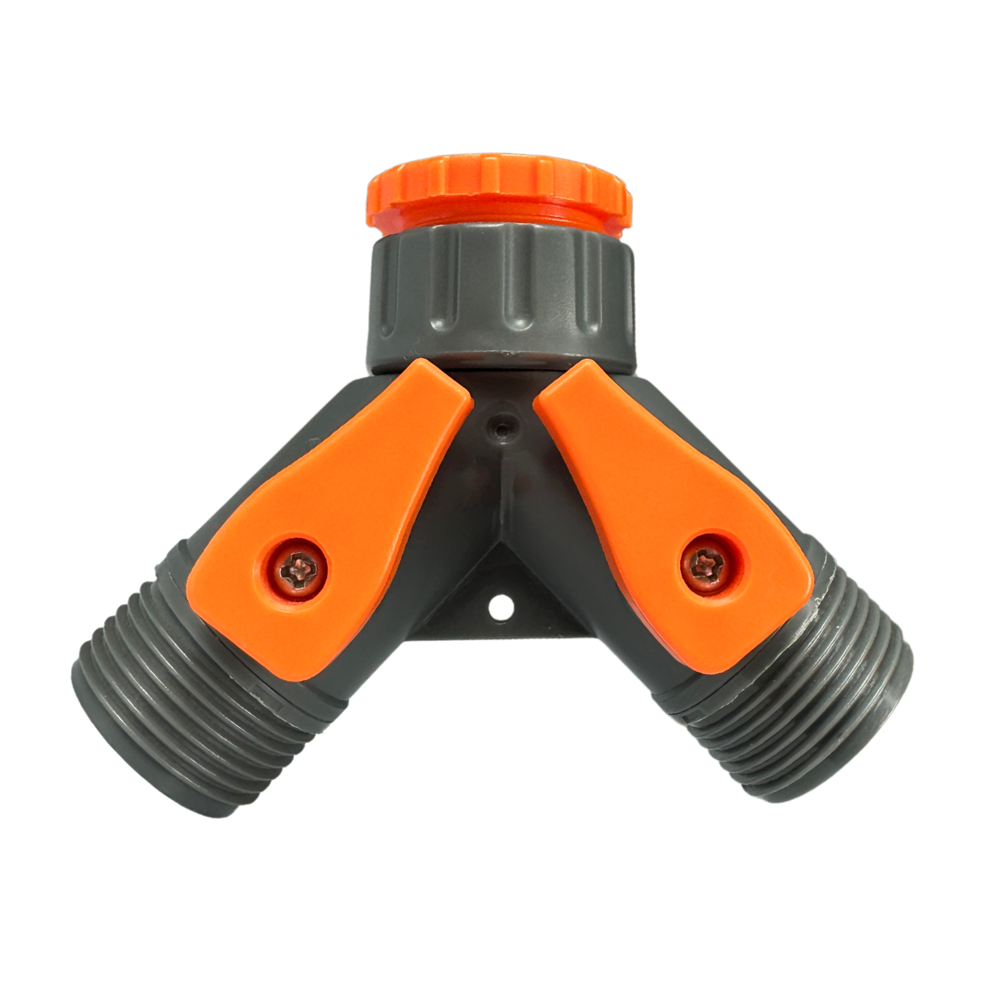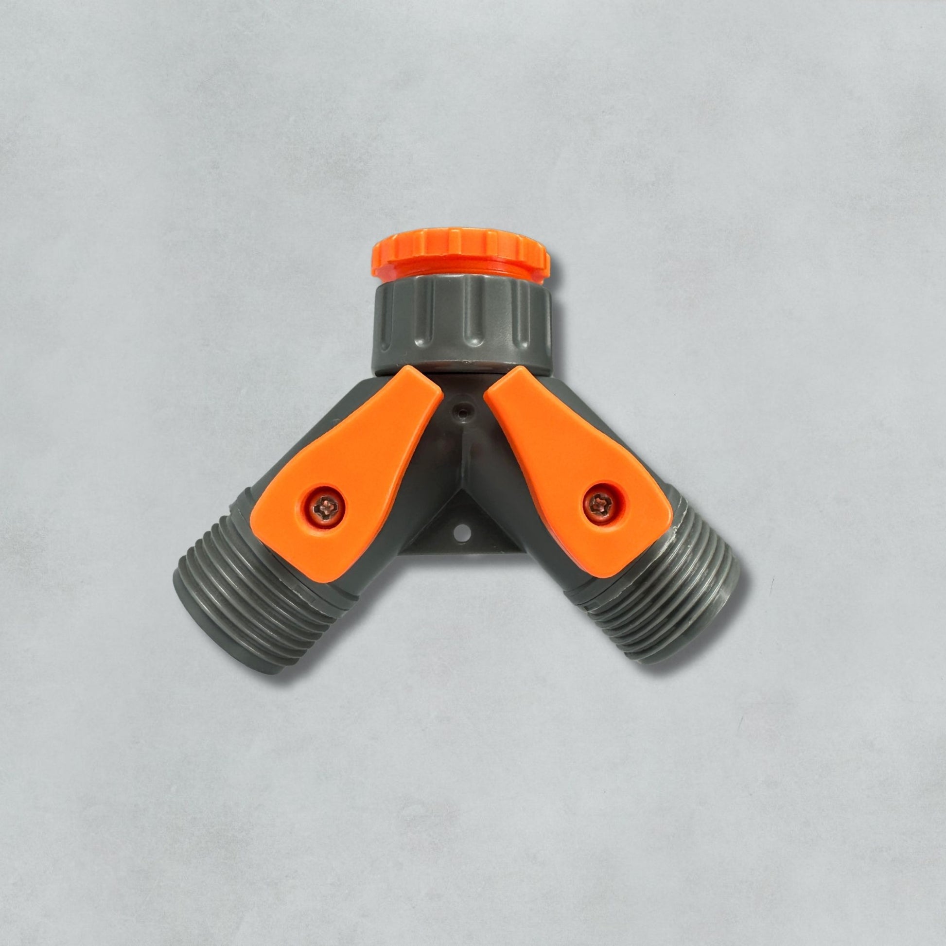 Adaptador para torneira de 3/4 com rosca de duas saídas com registros independentes.