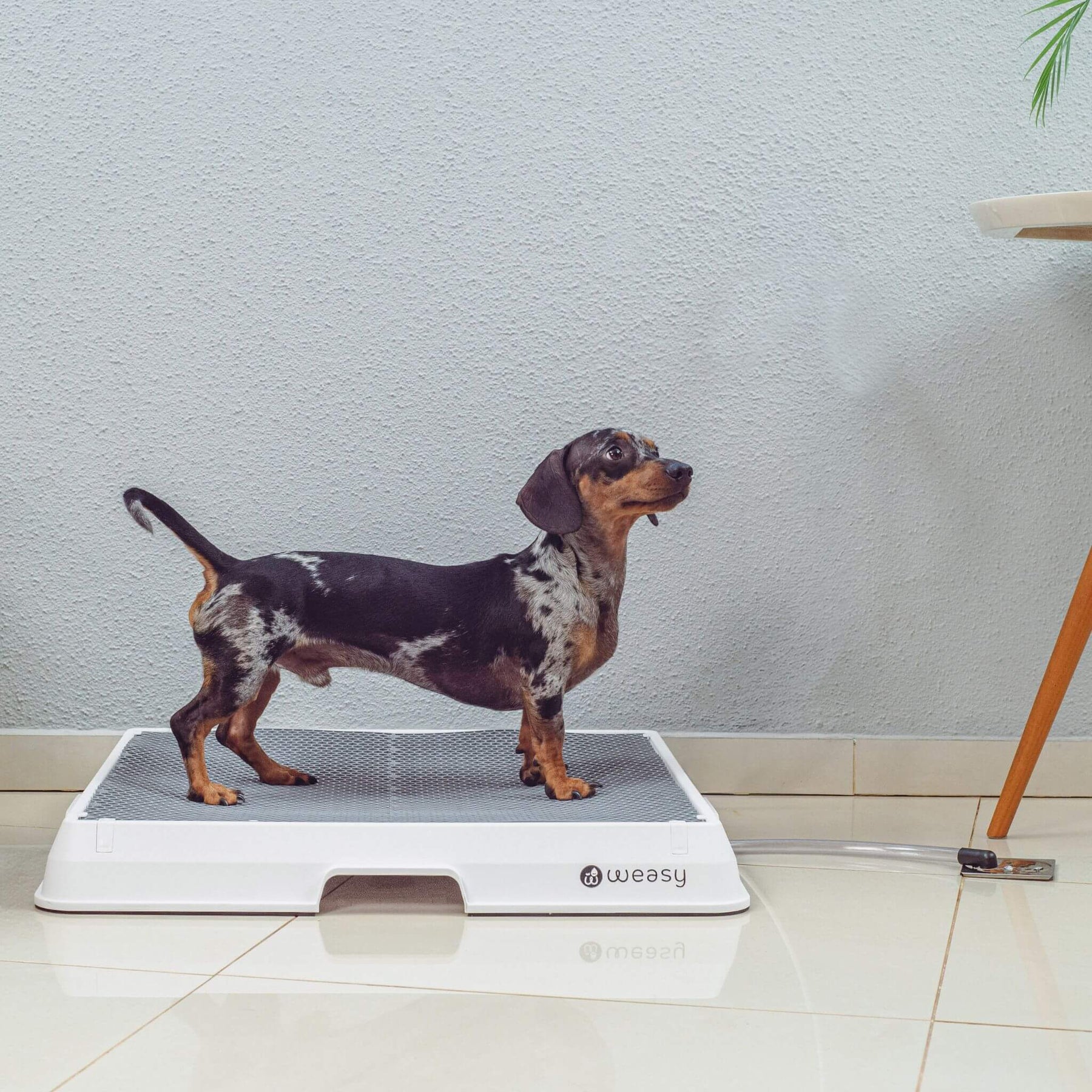 O Weasy tem um tapete elevado da bandeja que impede que o peludo tenha contato com o xixi. Por isso as patinhas ficam protegidas e a casa sem pegadas.
