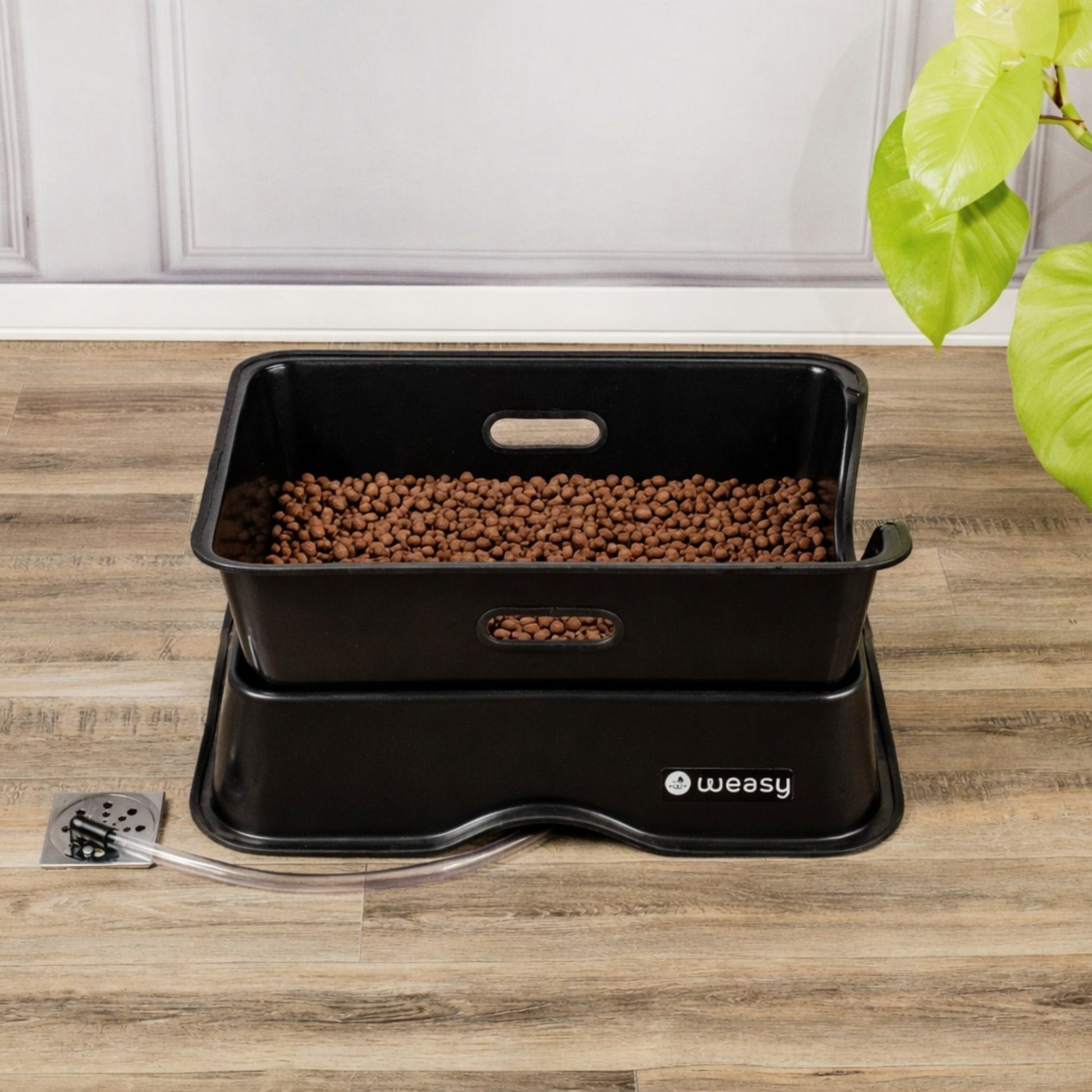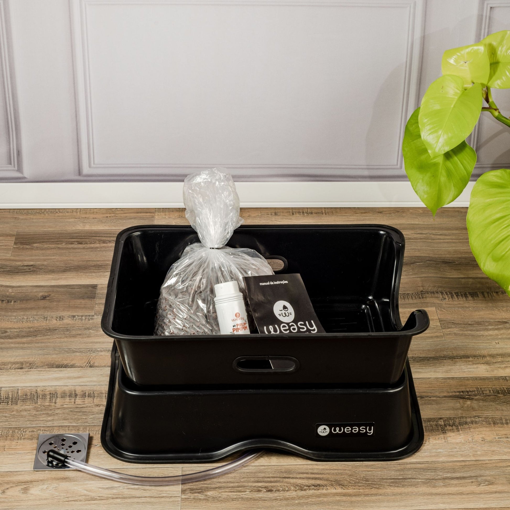 Indicado para substituir caixas de areia e sílica de forma definitiva e sustentável. O xixi vai direto para o ralo ou Weasy Bag, e o cocô é só recolher e descartar na privada da sua casa